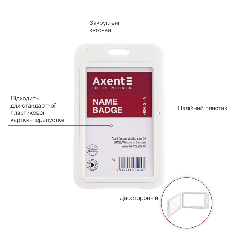 Бейдж вертикальний PP 70х110мм, внутрішній розмір 50х85мм, білий AXENT