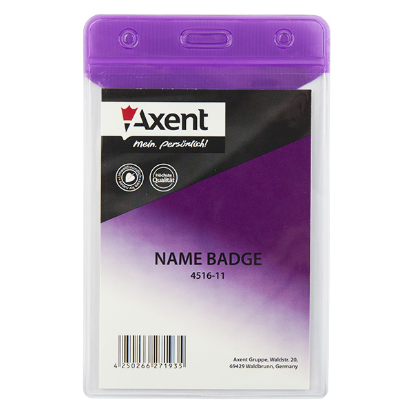 Бейдж вертикальний PVC 80х125мм, внутрішній розмір 67х98мм, матовий фіолетовий AXENT