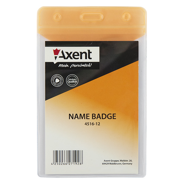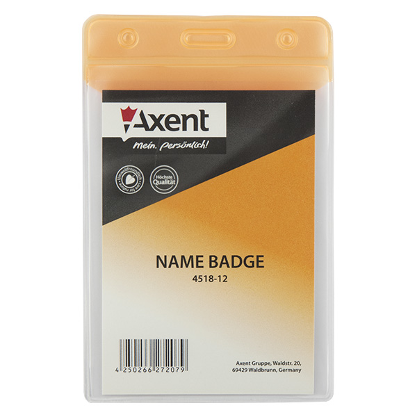Бейдж вертикальний PVC 80х125мм, внутрішній розмір 67х98мм, матовий оранжевий AXENT