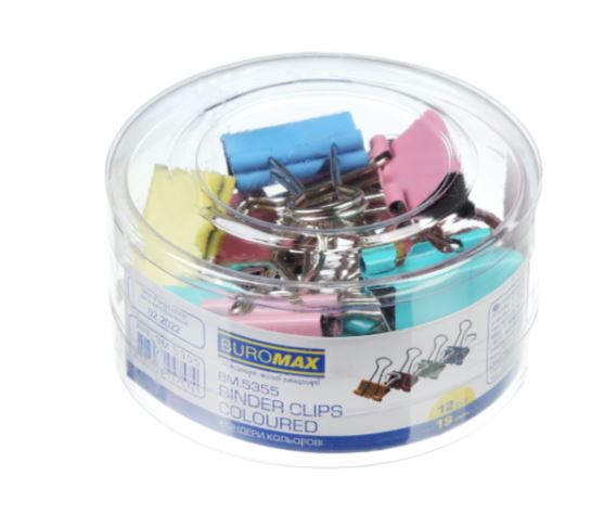 Біндер 19мм 12шт кольорового асорті BUROMAX