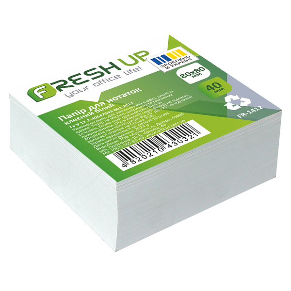 Блок паперу 80х80х40мм клеєний, білий, FRESH UP