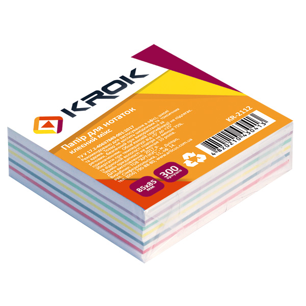 Блок паперу 85х85мм, 300 арк. клеєний, Мікс, KROK