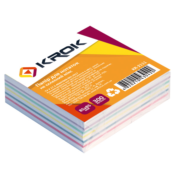 Блок паперу 85х85мм, 300 арк. не клеєний, Мікс, KROK