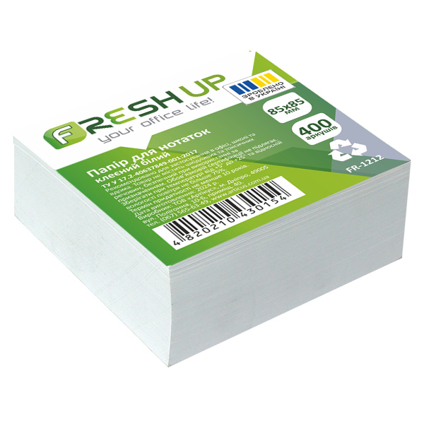 Блок паперу 85х85мм, 400 арк. клеєний, білий, FRESH UP