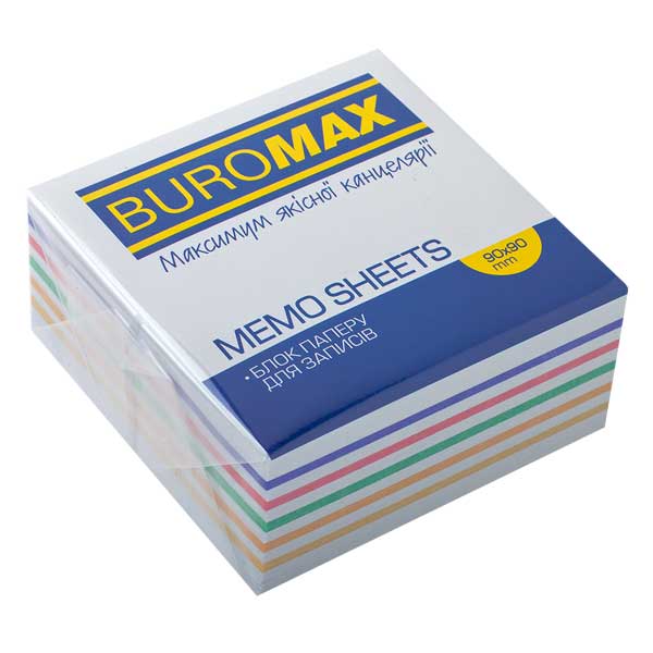 Блок паперу 90х90х40мм, клеєний, "Веселка", BUROMAX
