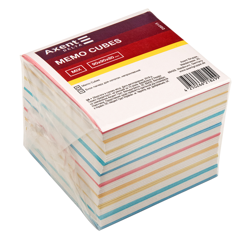 Блок паперу 90х90х80мм не клеєний, Мікс, Delta D8015, AXENT