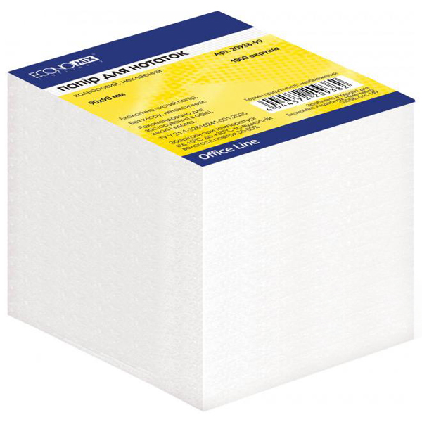Блок паперу 90х90мм, 1000 арк. не клеєний, білий, макулатурний, ECONOMIX