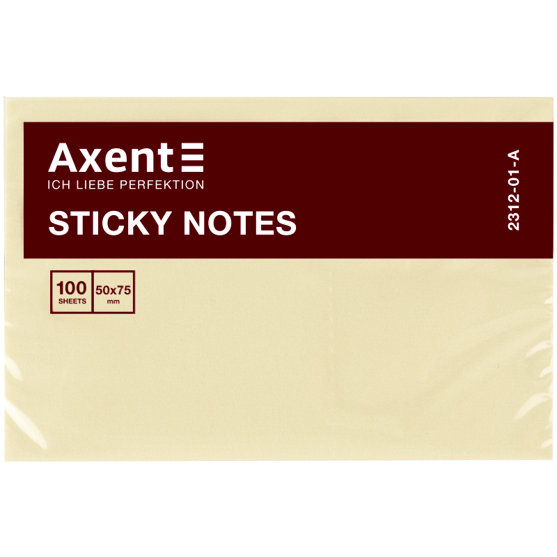 Блок паперу з клейким шаром 50х75мм, 100 арк. жовтий, AXENT