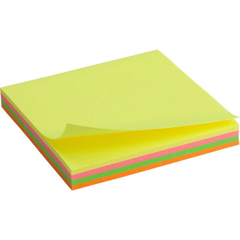Блок паперу з клейким шаром 75х75мм, 100 арк. асорті неон, AXENT