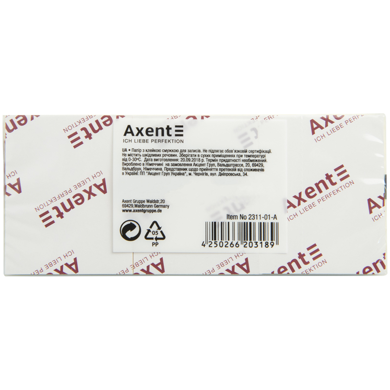 Блок паперу з клейким шаром 50х40мм, 100 арк. жовтий, 3шт/уп, AXENT