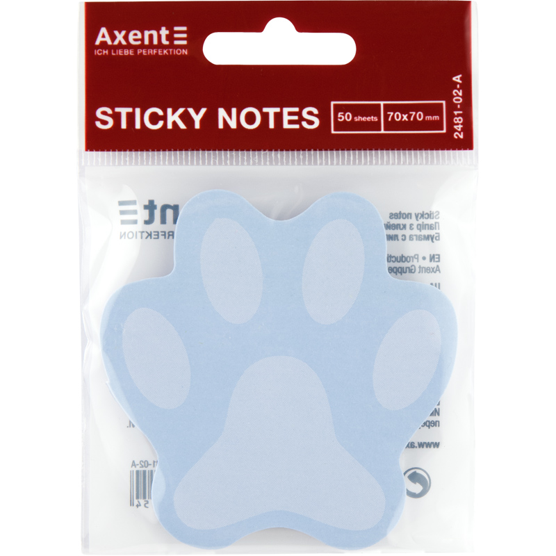 Блок паперу з клейким шаром 70х70мм, 50 арк. Paw, блакитний, AXENT