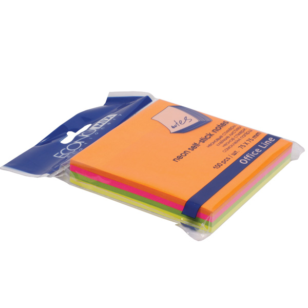 Блок паперу з клейким шаром 75х75мм, 100 арк. неон, асорті, ECONOMIX