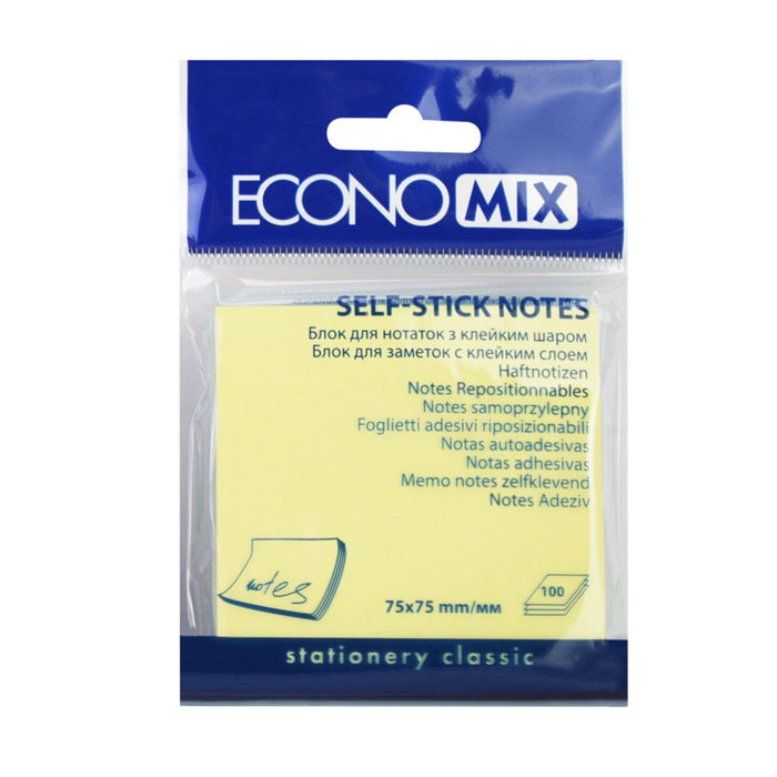 Блок паперу з клейким шаром 75х75мм, 100 арк. пастель, асорті, ECONOMIX