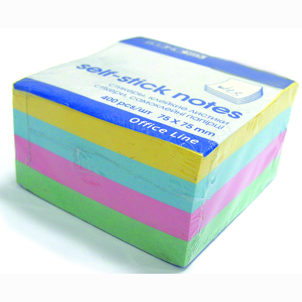 Блок паперу з клейким шаром 75х75мм, 400 арк. асорті, ECONOMIX