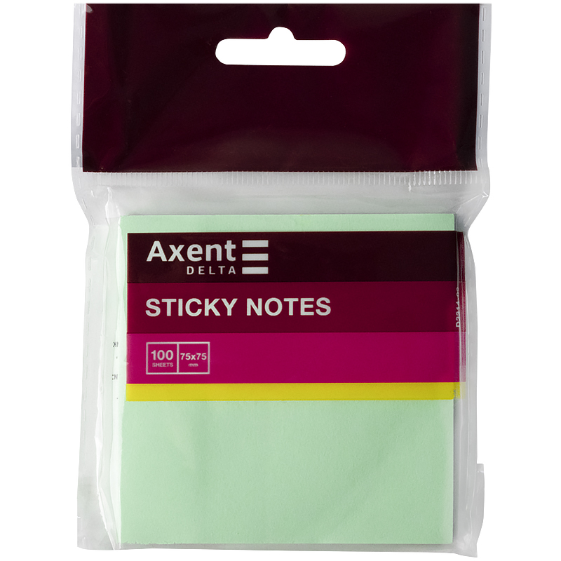 Блок паперу з клейким шаром 75х75мм, 100 арк. пастель, зелений, AXENT
