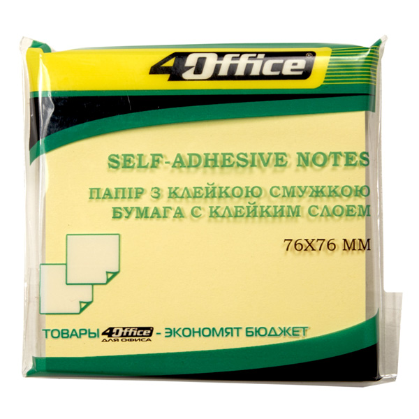 Блок паперу з клейким шаром 76х76мм, 100 арк. жовтий, 4OFFICE