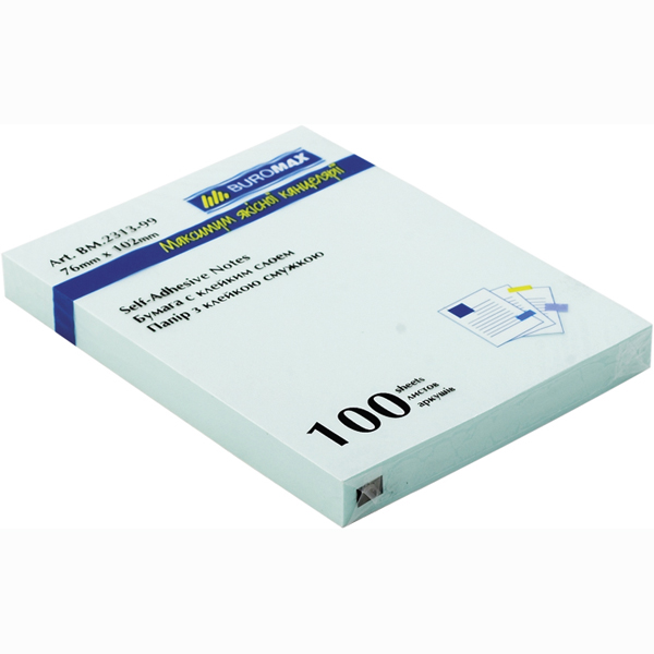 Блок паперу з клейким шаром 76х102мм, 100 арк. пастель, асорті, BUROMAX