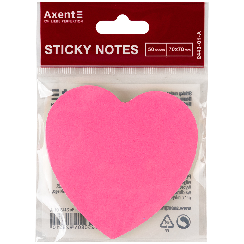 Блок паперу з клейким шаром "Серце" 50 арк. неон, асорті, AXENT