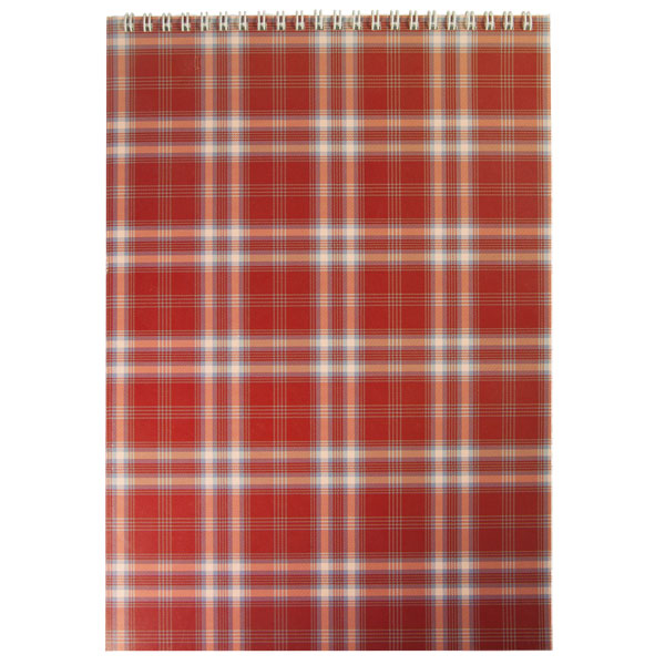 Блокнот А4, 48 арк, клітинка, офсет, спіраль зверху, м'яка картонна обкладинка, колір бордовий, Шотландка BUROMAX