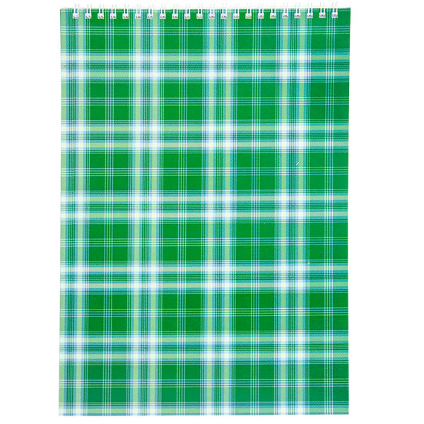 Блокнот А4, 48 арк, клітинка, офсет, спіраль зверху, м'яка картонна обкладинка, колір зелений, Шотландка BUROMAX