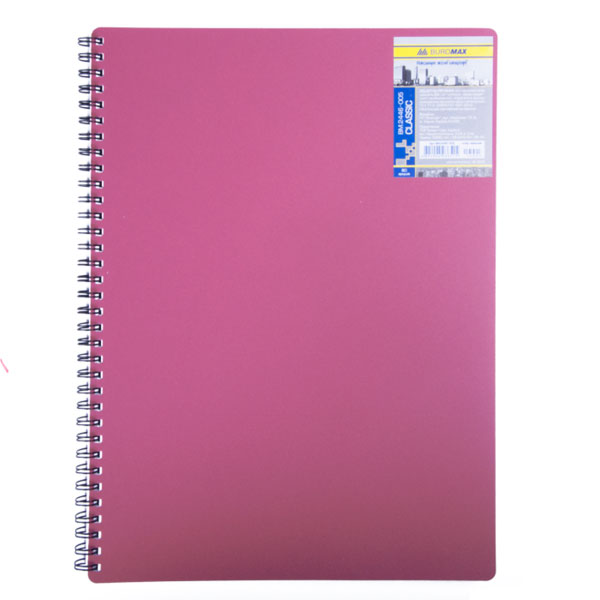 Блокнот А4, 80 арк, клітинка, офсет, спіраль збоку, пластикова обкладинка колір червоний, Classic BUROMAX