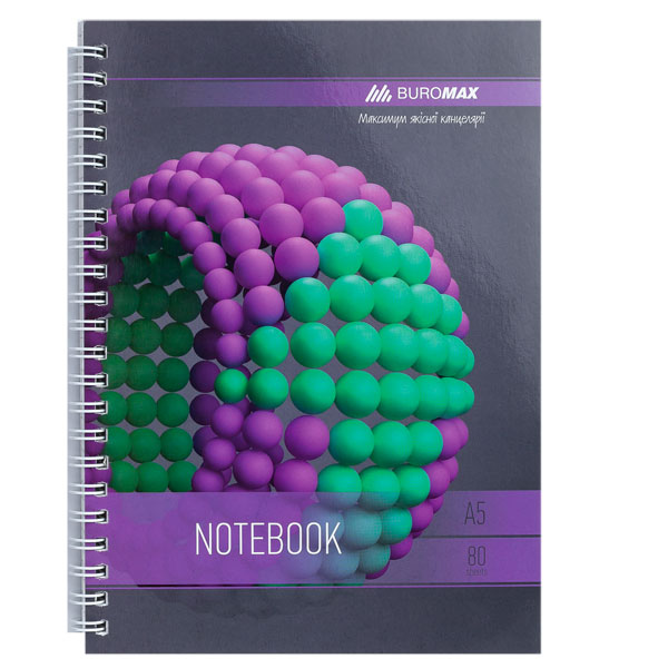 Блокнот А5, 80 арк, клітинка, офсет, спіраль збоку, картонна обкладинка, колір фіолетовий, SPHERE BUROMAX