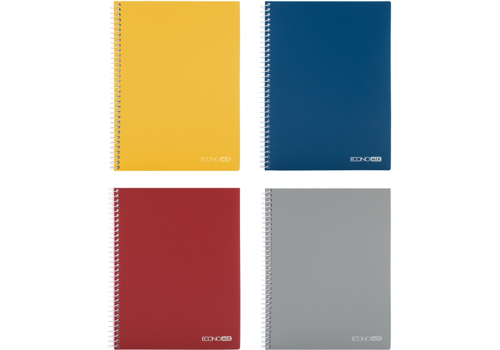 Блокнот А5, 80 арк, клітинка, офсет, спіраль збоку, пластикова обкладинка, колір асорті, Economix