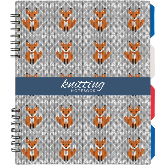 Блокнот В5 (175х206мм), 120 арк, клітинка, офсет, спіраль збоку, пластикова обкладинка, з розділювачами, Knitting "Белки на сером" OPTIMA
