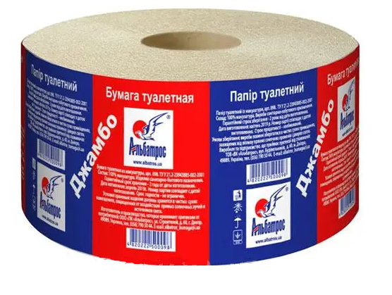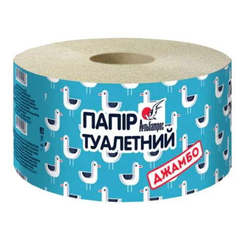 Папір туалетний рулонний 1-шаровий, макулатурний, з тисненням, 110 м, ДЖАМБО, АЛЬБАТРОС
