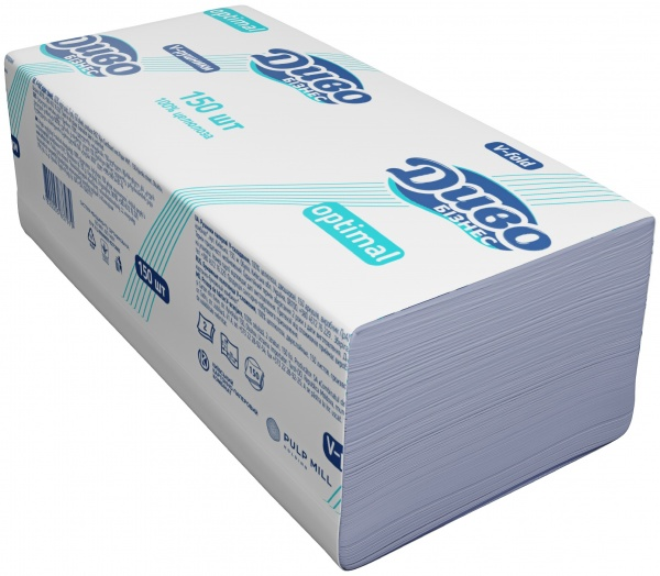 Рушники паперові листові V-складання 2-шарові 150арк. (230х210мм), Optimal, білі , ДИВО