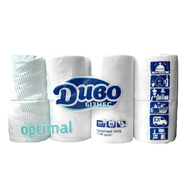 Папір туалетний рулонний 2-шаровий, целюлозний, Optimal, 16 шт, білий, ДИВО
