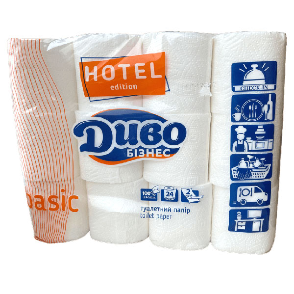 Папір туалетний рулонний 2-шаровий, целюлозний, Basic Hotel Edition, 24 шт, білий, ДИВО