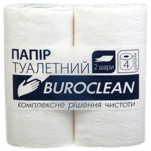 Папір туалетний рулонний 2-шаровий, 120 відривів, целюлозний, 4шт, білий, BUROCLEAN