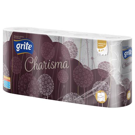 Папір туалетний рулонний 4-шаровий, 150 відривів, целюлозний, Charisma, 8 шт, білий, GRITE