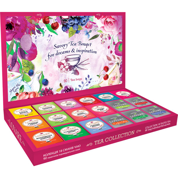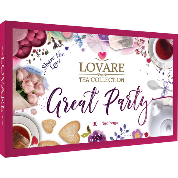 Чай асорті пакетований GREAT PARTY 18 видів по 5шт, LOVARE