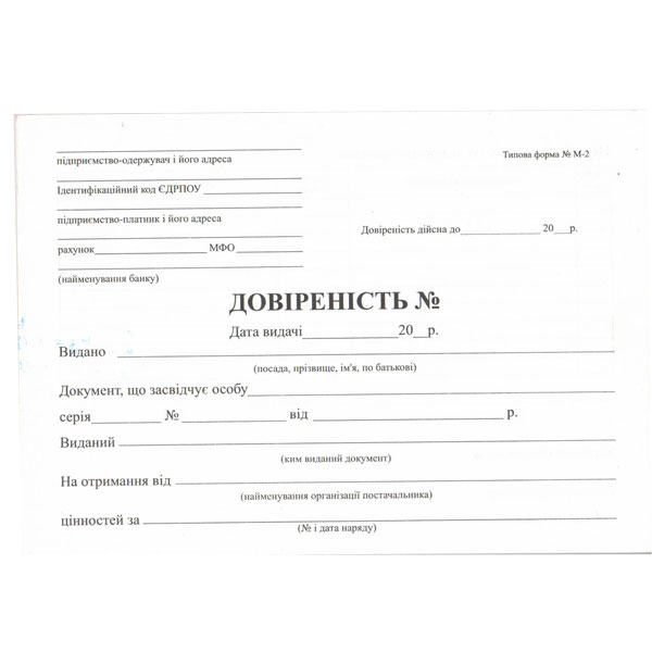 Довіреність А5 100арк. офсет