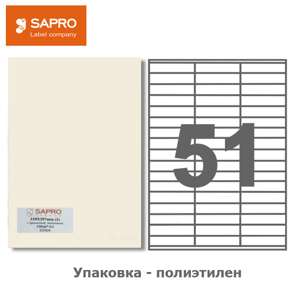 Етикетки самоклеючі А4 51 шт./арк., 70*16,9мм, 100 арк., SAPRO LABELS