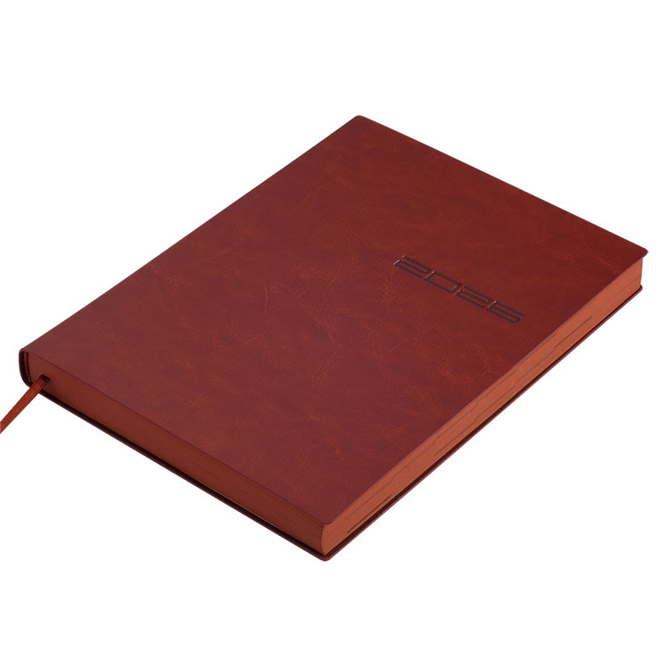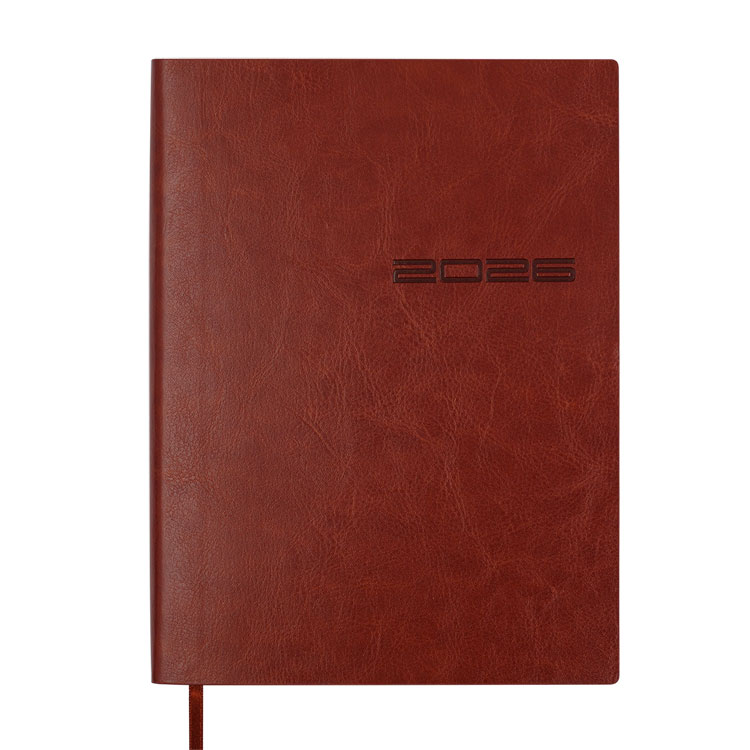 Гнучка обкладинка щоденника IDEAL виконана з штучної шкіри з фактурою натуральної шкіри. Гармонійно доповнює дизайн сліпе тиснення року на лицьовій стороні обкладинки та тонований зріз внутрішнього блоку в колір обкладинки.