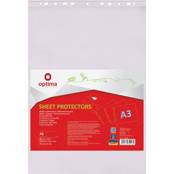 Файли А3, 40мкм, 50шт/пач, горизонтальні, OPTIMA