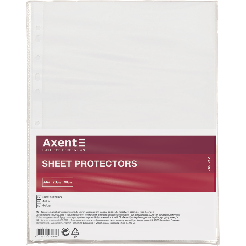 Файли А4, 90мкм, 20шт/пач, AXENT