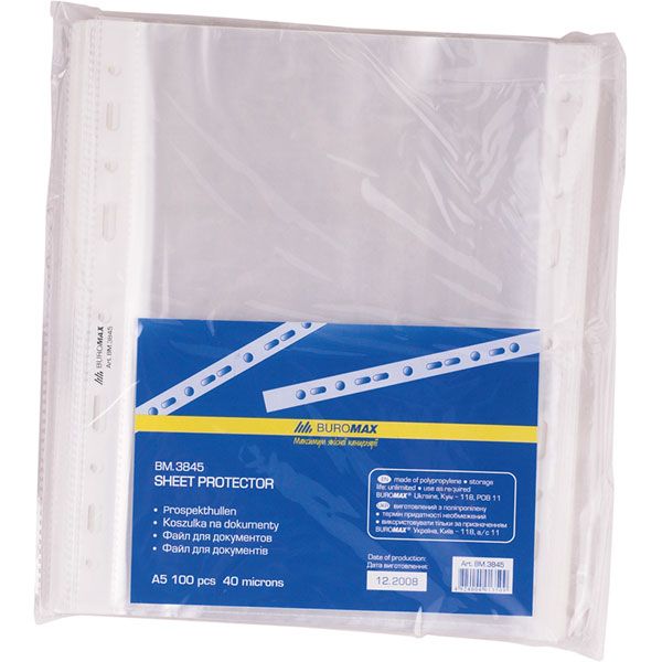 Файли А5+ 40мкм глянсові, 100шт., BUROMAX