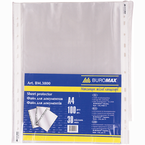 Файли А4+ 30мкм глянсові, 100шт., JOBMAX BUROMAX