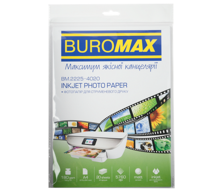 Фотопапір матовий А4 180 г/м2 20 аркушів BUROMAX