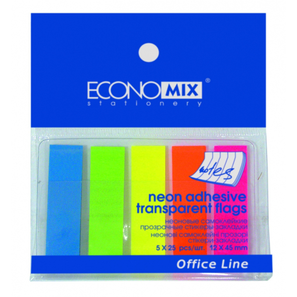 Індекси пластикові 12х45мм, 5 кольорів по 25 арк., неон, ECONOMIX