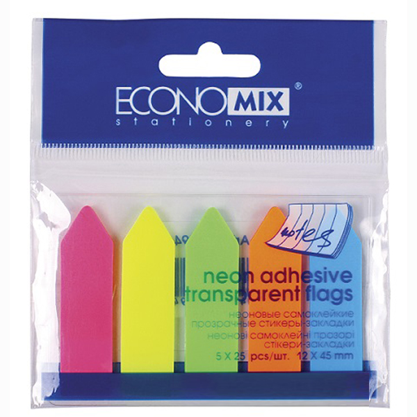 Індекси пластикові 12х45мм Стрілки, 5 кольорів по 25 арк., неон, ECONOMIX