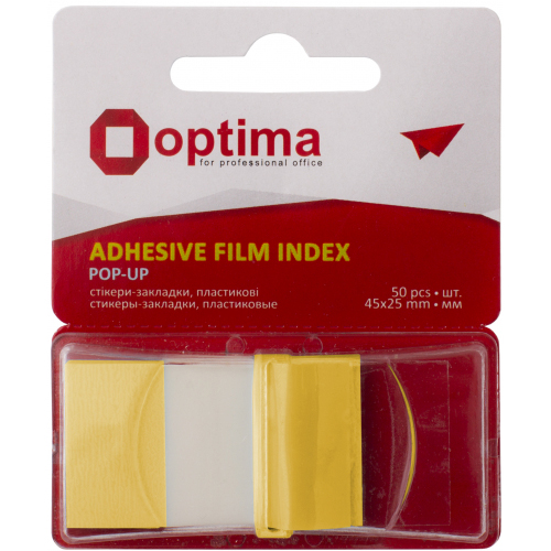 Індекси пластикові 25х45мм, 50 арк. жовті, OPTIMA