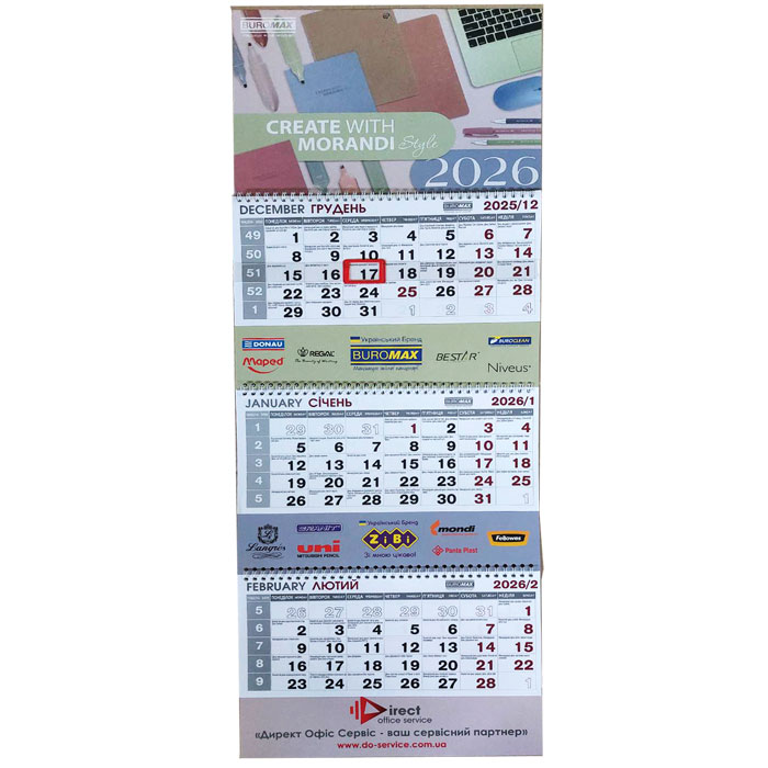 Календар квартальний 2026 рік на три пружини "Директ Офіс Сервіс"