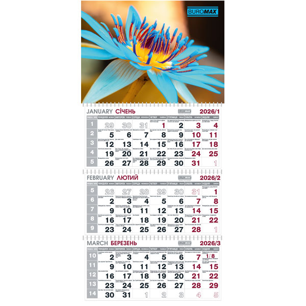 Календар квартальний 2026 рік на три пружини, Квіти, BUROMAX