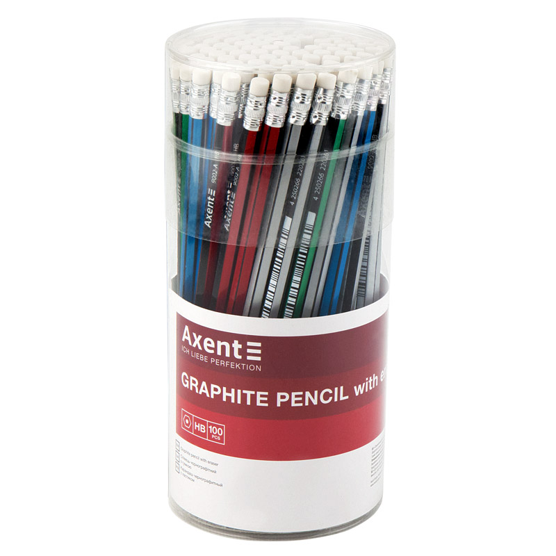 Олівець графітний з гумкою HB, шестигранний корпус, асорті в смужку,9002-А AXENT