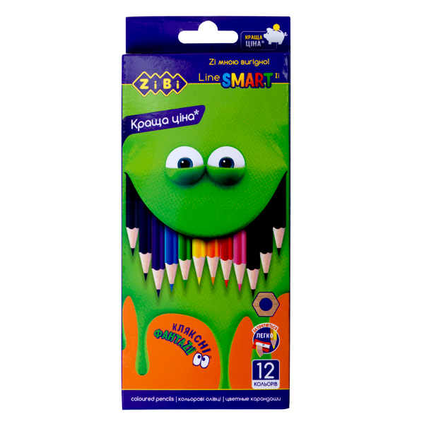 Олівці 12 кольорів шестигранний корпус, ZiBi